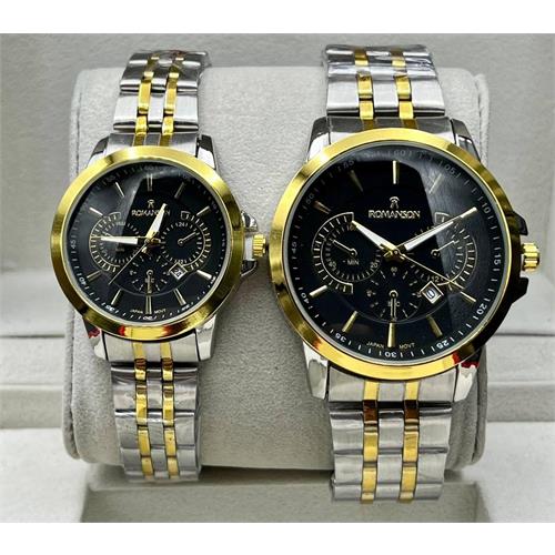 ساعتمچی زنانه و مردانه رومانسون بنددورنگ طلایی صفحه مشکی - کد 353