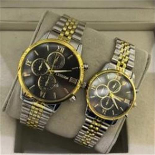 ست ساعت سیتیزن بند استیل 2 رنگ طلایی صفحه مشکی - کد 303ط