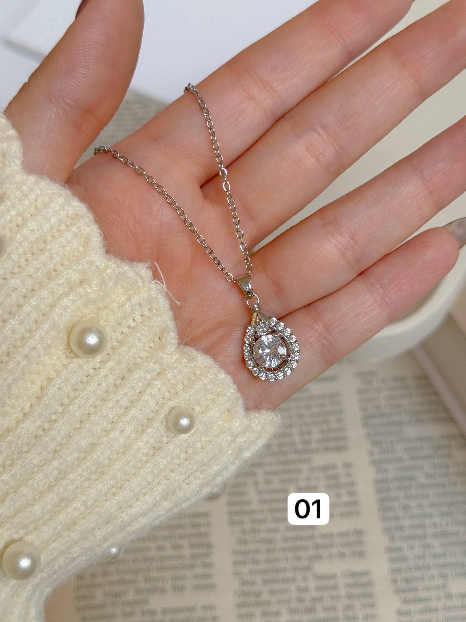 کالکشن گردنبند طرح جواهری سفید1159گردنبند/زنجیر استیل/پلاک ابکاری/ضدحساسیت/کیفیت بالا/نگین مخراج کاری شده/هرگونه بدلیجات از موادشوینده عطر ادکلن استخر عرق اسیدی دور باشند